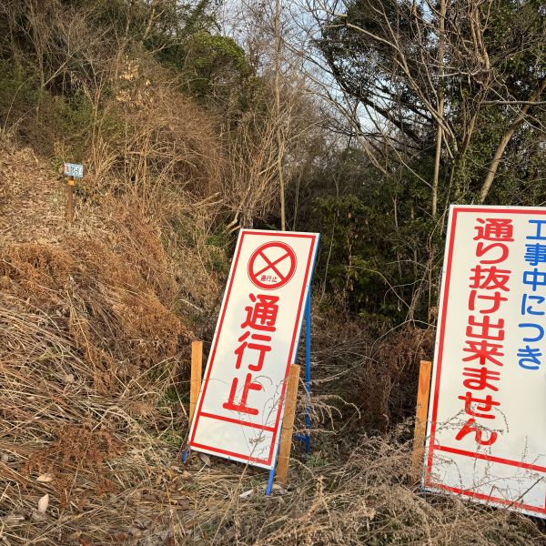 帰りに通ろうと思っていた道が工事で通行止めでした。
