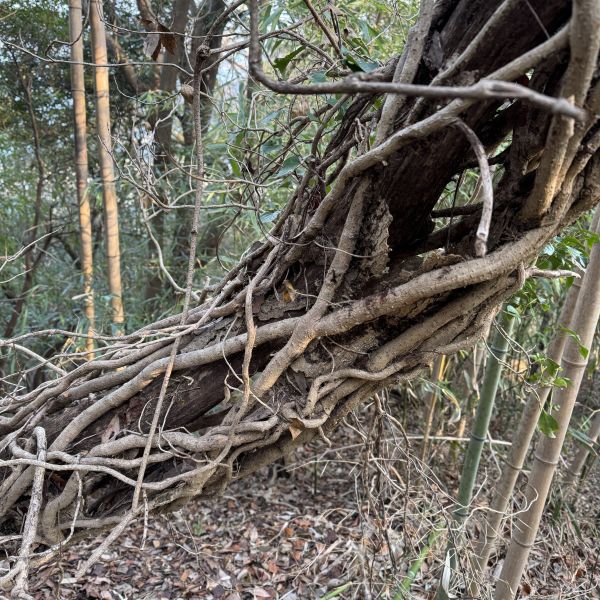 ツルが絡まった木がかれて、ツルだけ残った状態。
