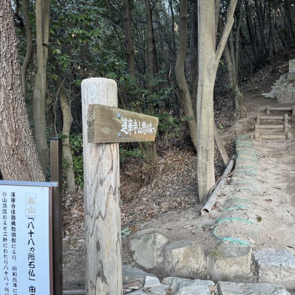 この道には、仏像がルートに沿って1から順番に置いてあります。88体あるようです。これを数えながら登るのも楽しい。