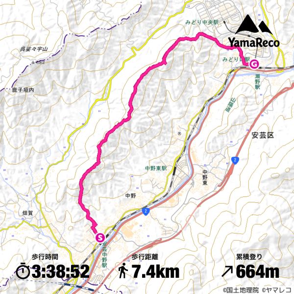 - コース:JR安芸中野駅前→蓮華寺→中心広場→蓮華寺山→水越峠分岐→高城山→JR瀬野駅(JRで安芸中野駅まで)
