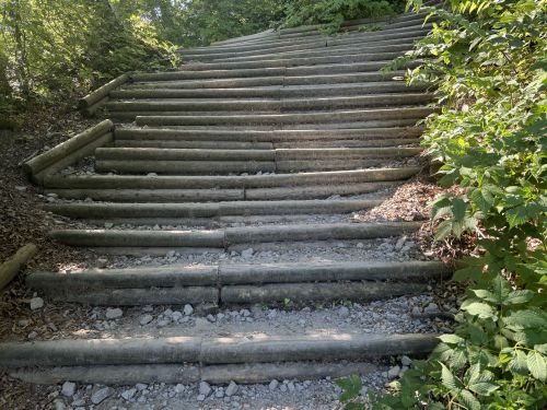 下山時はひたすら階段を下ります。トレッキングポールは必須です。