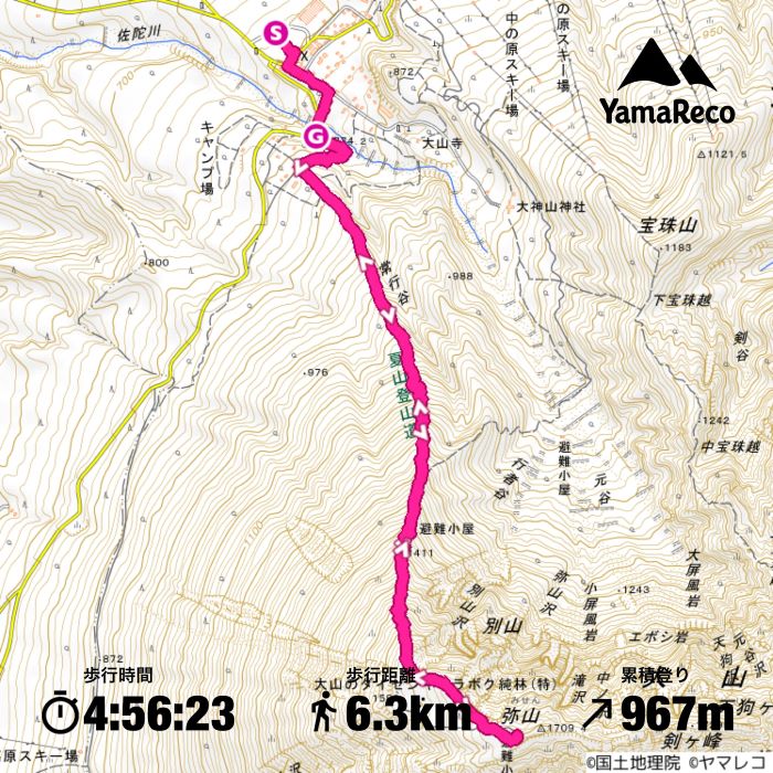 - 登山口からの標高差:959m