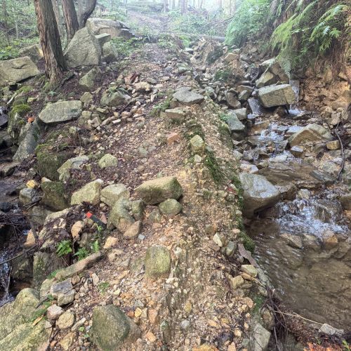 結論から言うと、この道は避けて、防水ダム公園駐車場から右に回る道を通るのが正解でした。