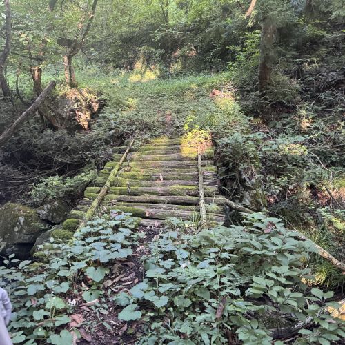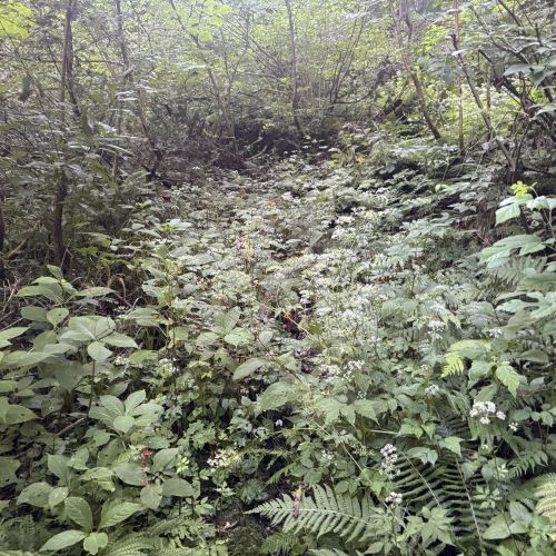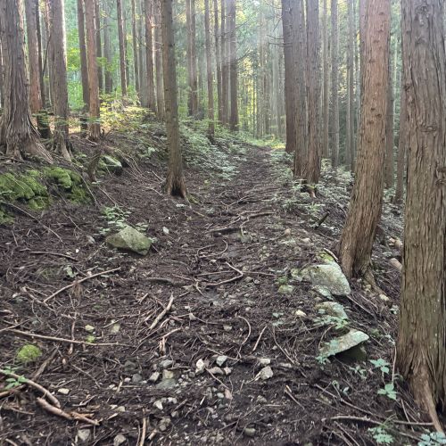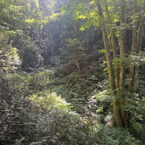 最初は沢に沿って進んでいく道。途中何度も沢を横切るのですが、橋が結構年季入っていて渡るの怖かった。