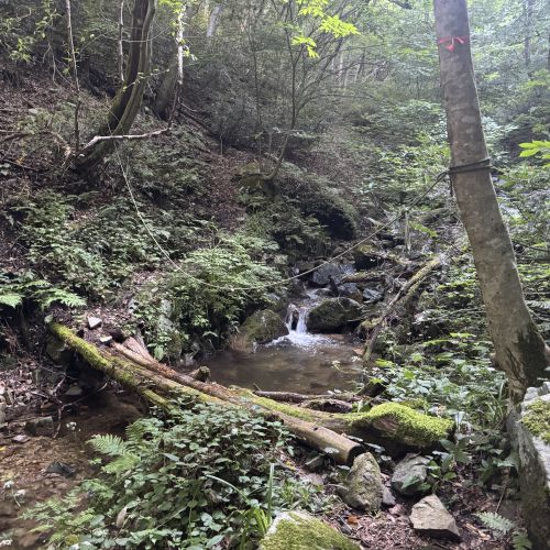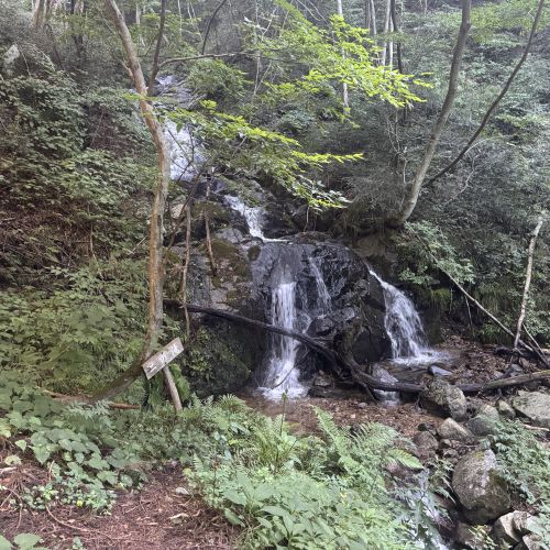 滝がおおくきれい。また沢沿いを登っていく道なので途中なんどか冷たい水で顔を洗いました。