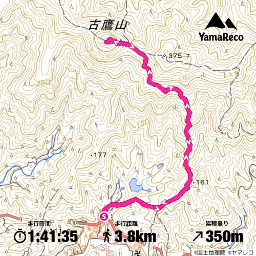 奥小路登山口→奥小路ルート分岐→古鷹山山頂(ピストン) - 累計標高差:356m