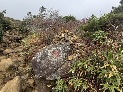 風がとても強くて、しかも山頂の岩場で道がよくわからず、岩の上を這いながら道を探しました。結構怖かった。滑落する人の気持ちがわかった。