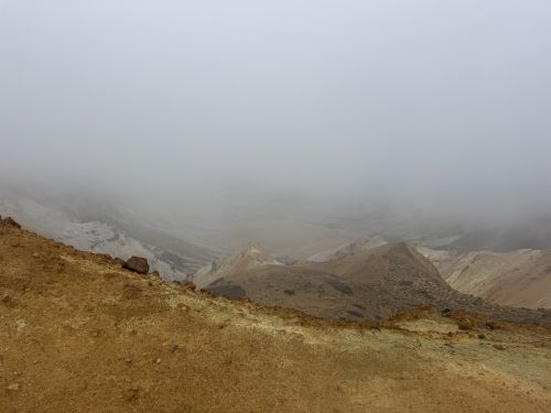 ガスでなにも見えない。風も強い。