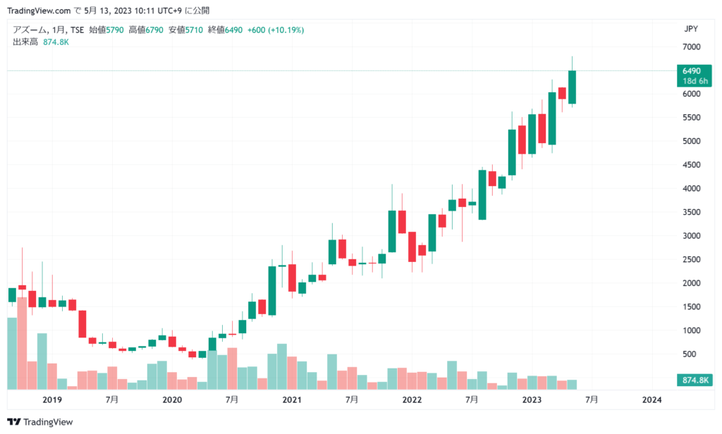 この度アズームという個別株で初めてテンバガー(株価が購入した時点から10倍になること)を達成しましたので、このことについて書いてみたいと思います。