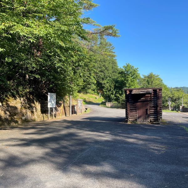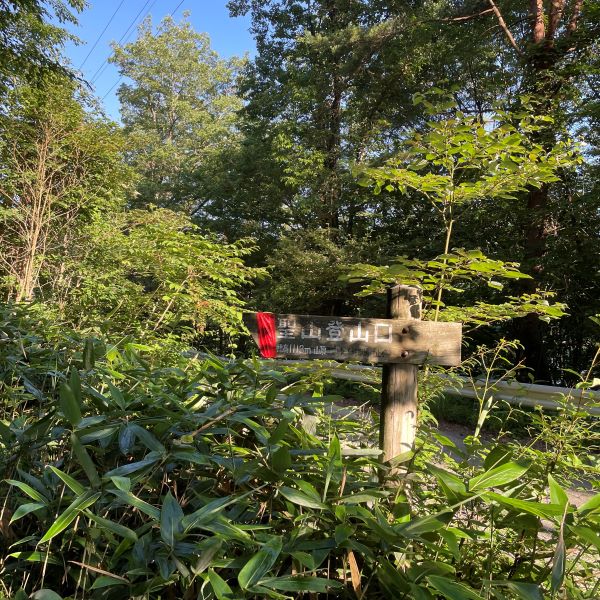 聖湖沿いに、車道を歩いていくと、登山口への分岐があります。