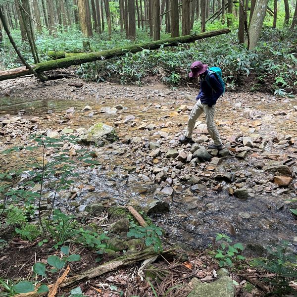 ここから登山道に入りますが、道には結構水が入ってきていて、一部川のように道に流れていました。
