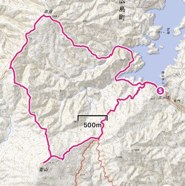 ここから、聖湖沿いの車道にでて、25分くらい歩くと、樽床ダム駐車にもどってきます。