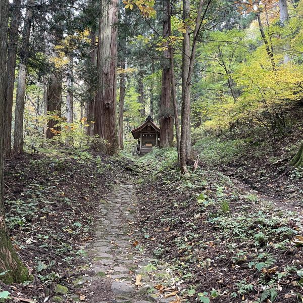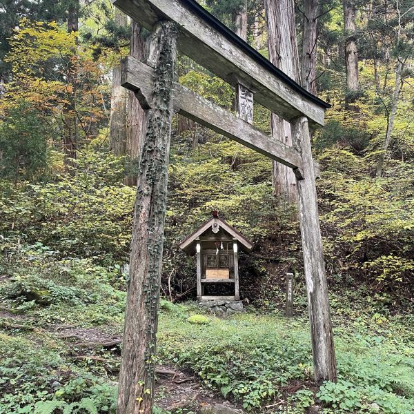 鳥居に出ました。この辺りは、太い杉の木が何本も生えていて、とても神々しい雰囲気です。
