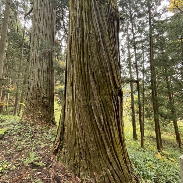 下山して、熊野神社で改めて杉を観察。こんなに太い杉の木が何本もある風景は初めてかも。行ったことない人は必見です。